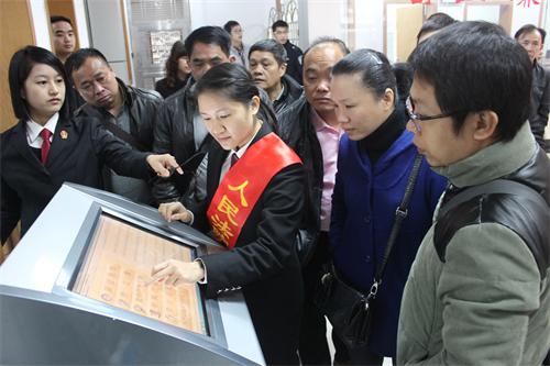 当天上午10时,在法院干警的引导下,群众代表们参观了法院立案大厅、执行指挥中心、科技法庭,对法院审判、执行等各个环节的工作和司法公开三大平台建设情况有了进一步了解,零距离感受阳光司法。