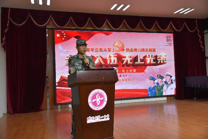 “青春是一本书,一千多页还没来得及细细阅读,就已经悄悄翻过。”法治教育课堂上,人武部梁参谋用自身的经历告诉大家,部队是锻炼人、熏陶人、提升人的绝佳平台,是关心人、爱护人、帮助人的大家庭,是健体魄、涨知识、提素质的好地方,同学们应趁着年轻,投身军旅当中,披肝沥胆,壮我中华,当一个能文善武的热血男儿,做一名顶天立地的有为青年。他还分析了当前的国际国内形势及国防现代化建设的现状,深刻阐明了应征入伍的重要意义,详细解读了应征入伍的各项政策,为在场的师生上了一堂深刻的国防教育课。他表示,希望青年学生积极响应党和政府的征兵号召,踊跃报名应征,到部队中成长和锻炼自己,为国防事业贡献力量。