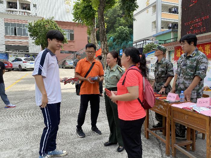 高考结束,梦想起航。高三毕业是中学生涯的结束,也意味着成人的开始。在他们离开校园迎接未来的挑战前,7月9日上午,万秀区委政法委联合万秀区人民武装部、万秀区扫黑办、城北街道、城北司法所一起走进梧州市八中校园,为高三毕业生送上一堂爱国主义、军事知识、法治警示教育宣讲课。