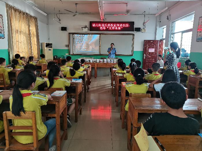 为进一步加强校园反邪教宣传力度,增强广大师生防范和抵御邪教侵蚀的能力,倡导“无邪未来”,在学校内营造人人参与反邪教的良好氛围,2021年6月11日下午,万秀区城北街道联合城北司法所在梧州市钱鉴小学开展主题为“无邪未来”的反邪教警示教育知识讲座。