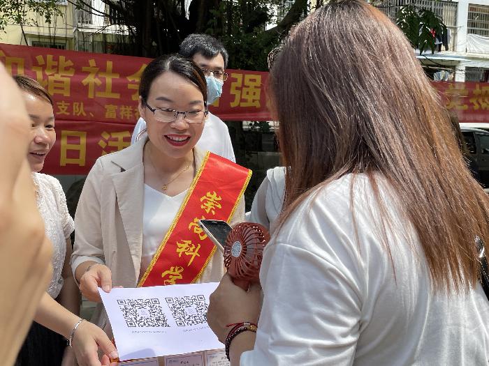 本次活动通过设置咨询台进行现场答疑、现场讲解、发放反邪教等各类宣传手册和便民宣传环保袋等形式,全方位、多角度地面向广大群众进行拒绝毒品、反对邪教等知识宣传。同时,富民街道党政领导作为一名普通的反邪教志愿者,带头引导居民群众扫码关注“中国反邪教”“广西反邪”微信公众号,倡议居民群众参与“对邪教说不”“文明家庭拒绝邪教”网络签名活动。利用网上网下齐宣传,进一步扩大辖区反邪教宣传影响力。