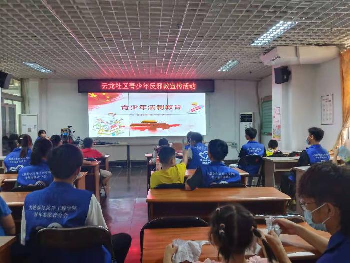 为进一步提高辖区青少年防范和抵制邪教的意识,提高自我保护能力,近日,梧州市万秀区联合梧州学院大数据与软件工程青年志愿者分会到云龙社区,上了一堂特别的“周末法制课”,以“崇尚科学,反对邪教”为主题,大力开展反邪教宣传活动。