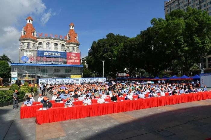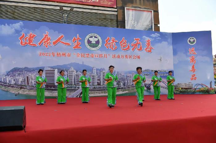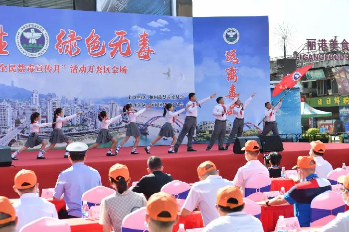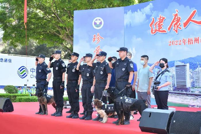要将禁毒知识种子送入百姓手中……”6月23日,随着梧州市副市长、市公安局局长劳高进宣布正式启动梧州市“全民禁毒宣传月”活动,梧州市禁毒委在万秀区丽港广场拉开2022年梧州市“全民禁毒宣传月”集中宣传活动帷幕。市禁毒委成员单位政法干警、网格员、禁毒志愿者、教师代表、学生代表、居民群众约1000多人参加了本次活动。