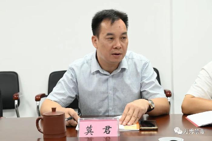 7月29日,梧州市禁毒支队政委黄蕻,市禁毒办副主任陈宏清等一行4人到万秀区禁毒办调研指导禁毒工作。区委常委、政法委书记莫君,区委政法委、区禁毒办相关负责人等参加会议。