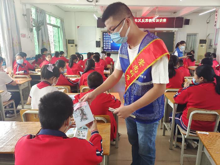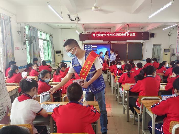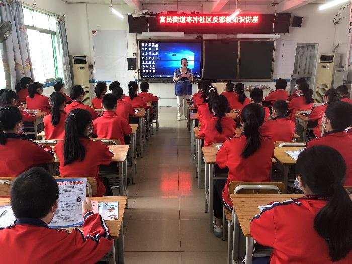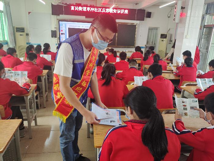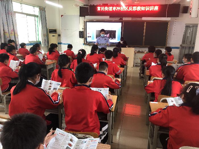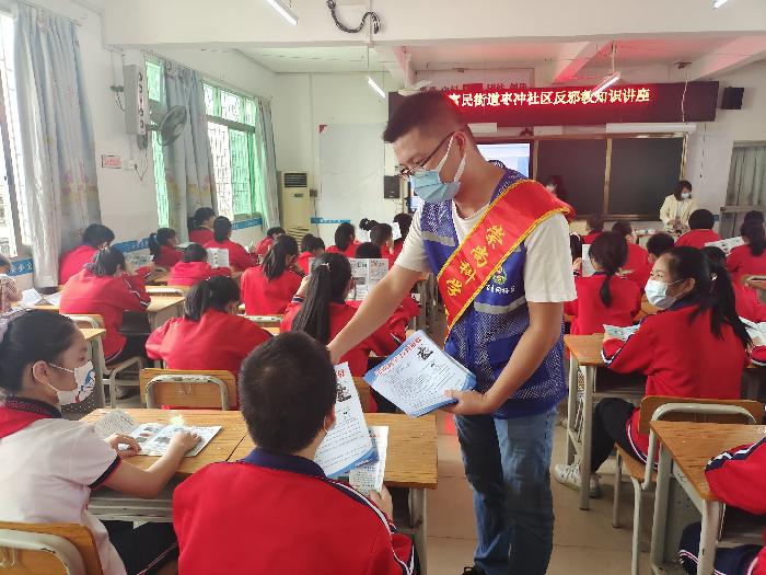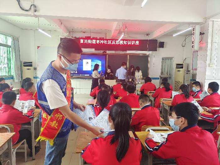 “同学们,你们知道什么是邪教吗?”课堂上,富民警务区覃警官详细讲解了邪教的社会危害、邪教与宗教的区别、遇到邪教怎么办等相关内容,并穿插着情景模拟小游戏和反邪教知识问答,提高学生的专注力和学习热情,强化反邪教警示教育效果,进一步提高学生对邪教危害的认识。活动现场,反邪教志愿者向学生们发放了反邪教知识宣传彩页,动员学生们回家与父母一起学习,通过小手拉大手,营造浓厚的反邪教氛围。