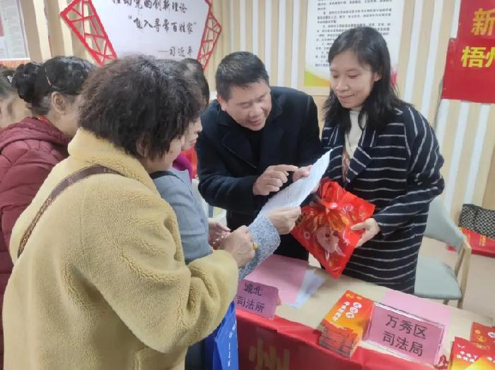 龙年新春佳节将至,万秀区司法局城北司法所与法律顾问积极参与各社区开展的迎新春活动,向辖区居民群众送上普法宣传、法律援助等法治“年货”。