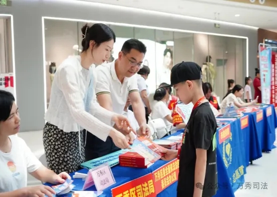 2024年5月是第四个“民法典宣传月”,为了发挥梧州市首家“法治进商圈”服务工作室作用,整合有关行业领域职能部门职能作用,调动辖区律师、法律顾问、“法律明白人”、法律服务志愿者等法律服务资源深入商圈,全方位开展送法进商圈,为商圈多方位提供有关法律法规、政策咨询解答服务,5月25日,万秀区司法局联合相关单位在梧州市万达商场一楼小中庭开展主题为“美好生活·民法典相伴”的法治宣传年活动。