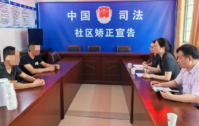 唐娌向社区矫正机构工作人员了解小林在社区矫正期间的表现,并耐心细致地与他进行一对一谈心谈话,了解他目前学习、生活、身心状况等,鼓励他放下思想包袱,以积极健康的心态面对人生,重新回归家庭、学校。