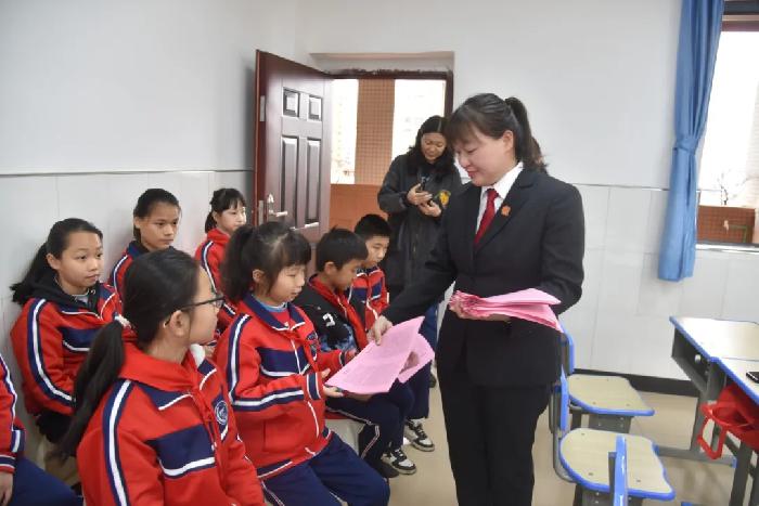 随后,“知识产权法律知识小课堂”开讲。法官结合日常生活中的真实案例,向同学们进行法治教育授课,向同学们普及知识产权保护法律知识。