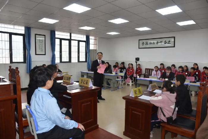 “现在开庭!”稚嫩的童声伴随着清脆的法槌声落下,一场庄严肃穆的“庭审”开始了。“审判长”熟练地驾驭庭审,“合议庭”分工配合,法庭调查有条不紊,“代理律师”唇枪舌战,“书记员”“法官助理”一丝不苟……从庭前准备、法庭调查、法庭辩论,再到当事人最后陈述、法庭裁判,每个环节学生们都全身心投入到庭审之中,融入到其扮演的各个角色当中,精彩再现了法庭审判全过程。