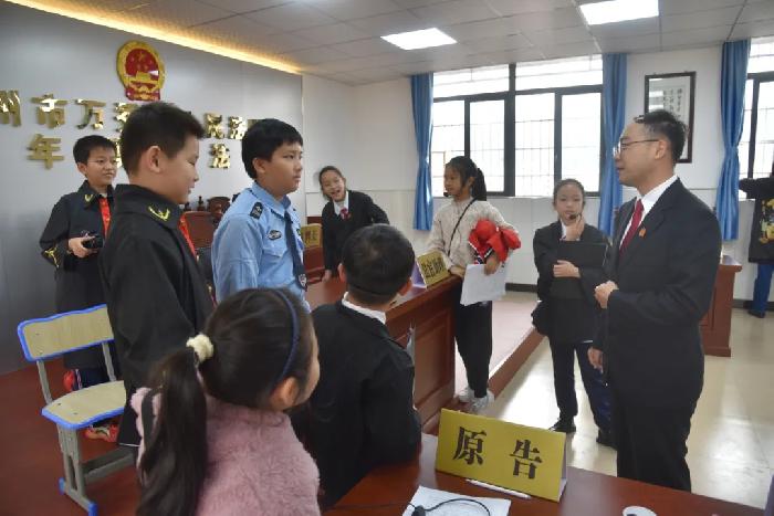 为增进青少年对知识产权的了解,引导青少年从小树立知识产权保护意识,在第42个“3·15国际消费者权益日”,万秀区人民法院阳光护苗团队走进梧州市第一实验小学,开展知识产权进校园普法宣传活动,以“模拟法庭+知识小课堂”的方式,为在校师生呈现了一场别开生面的法治教育课。第一实验小学通过全程直播的方式,组织在校1000余名师生观看。