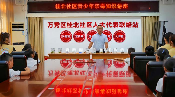 活动伊始,城北街道相关负责人表示厚植识毒、拒毒、防毒意识是健康人生的关键,此次活动旨在通过多维度、深层次对禁毒知识的讲解,让参与的同学们深刻认识到毒品的危害,随后禁毒宣传环节逐一展开。“中国历史上第一位禁毒英雄是谁?”“他在哪里销毁的鸦片?”区司法局城北司法所负责人以林则徐虎门销烟的故事引出毒品对于国家和人民的危害,激发学生们学习禁毒知识的兴趣,通过提问互动的方式向同学们解释什么是毒品以及毒品对于个人、家庭、社会的危害,并详细讲授目前市面较为流行的“巧克力”“饼干”“减肥药”等新型毒品伪装,结合青少年心理特点,运用通俗易懂语言,告诫同学们要增强防毒观念,提高法律知识,珍爱生命,远离毒品。