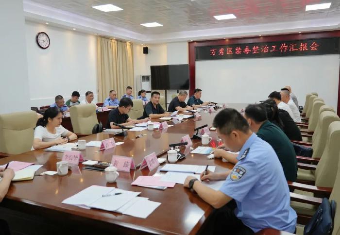 自治区禁毒办督导检查组、市委政法委、市公安局、市禁毒办以及万秀区禁毒委副主任、各镇(街)党(工)委书记、区禁毒办相关负责人参加会议。