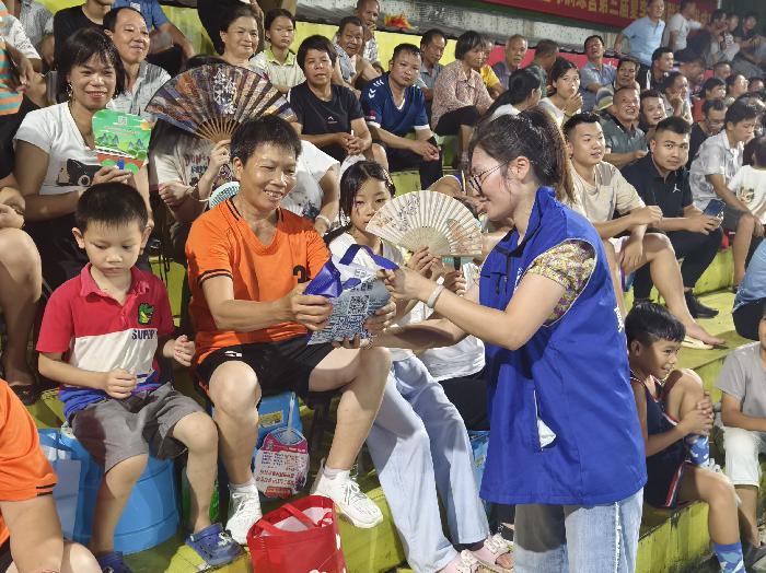 随着一声哨响,球场瞬间燃爆,球员们激情四射,观众们欢喜雀跃,场面热闹非凡。借此有利契机禁毒社工们也积极在赛场周边支起禁毒宣传摊架,向过往观众发放禁毒宣传折页和禁毒宣传小礼品,面对面普及禁毒知识,同时告诫大家生活中要增强防范意识,远离易涉毒场所,警惕电子烟的危害,抵制诱惑,保护好自身安全。赛场上,观众们一边为场上球员呐喊助威,一边接受禁毒社工的禁毒知识宣传,大家纷纷表示将积极参与禁毒工作,争当禁毒宣传员,为构建无毒社会贡献自己的力量。