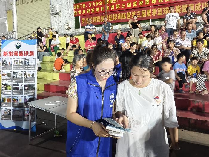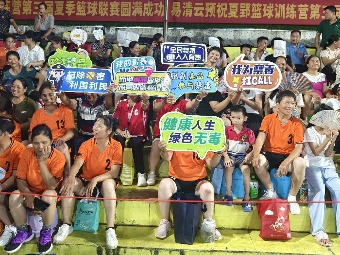 为提高广大群众对禁毒工作的关注度和参与度,树立“健康人生 绿色无毒”生活理念,进一步筑牢社会的防毒屏障。7月22日晚,夏郢镇禁毒办走进夏郢镇第三季夏季篮球联赛赛场开展禁毒宣传活动。