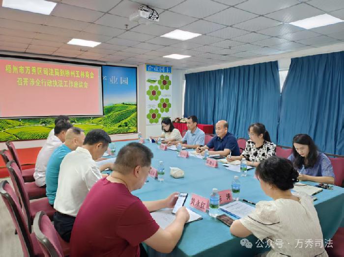 为深入贯彻落实自治区、市关于规范涉企行政执法专项行动工作安排部署,收集企业反映强烈的涉企行政执法突出问题线索,扎实推进梧州市万秀区规范涉企行政执法专项行动,万秀区司法局与万秀区工商联共同召集梧州玉林商会及各企业代表召开涉企行政执法工作座谈会,倾听企业心声,着力提升经营主体满意度,助推打造一流法治化营商环境,为企业高质量发展保驾护航。