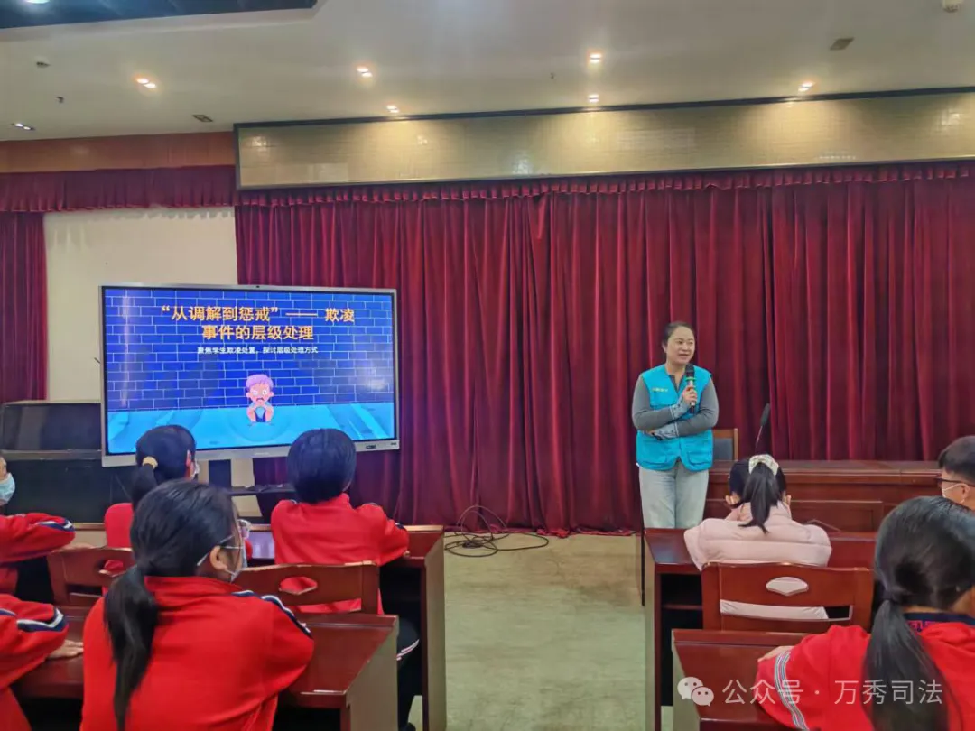 此次分层分类宣讲,是万秀区司法局深耕校园法治教育、推动学生欺凌防治工作的生动实践。精准对接不同群体在学生欺凌防治中的需求与职责,如同为校园案例织就了一张“立体防护网”,让家长知责任、学生明底线、教师会处置,凝聚起家校社协同治理的强大合力。